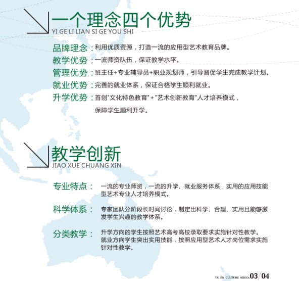 升学方向:美术绘画、美术教育、服装设计、平面广告设计、建筑设计