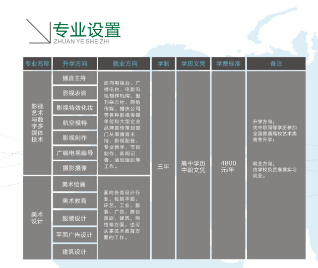 『备注:1、凭中职同等学历参加全国普通高校艺术类高考升学。2、由学校负责推荐实习就业』