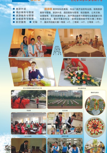 学校教育、美容护理、旅游部、财经部