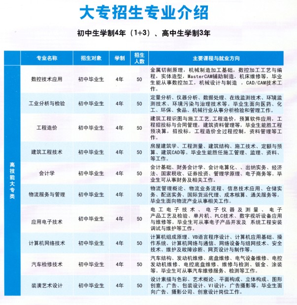 数控技术应用、工业分析与检测、工程造价、建筑工程技术、会计学、物流服务与管理、应用电子技术、计算机网络技术(以上专业毕业后可以拿重庆科技学院的大专文凭)