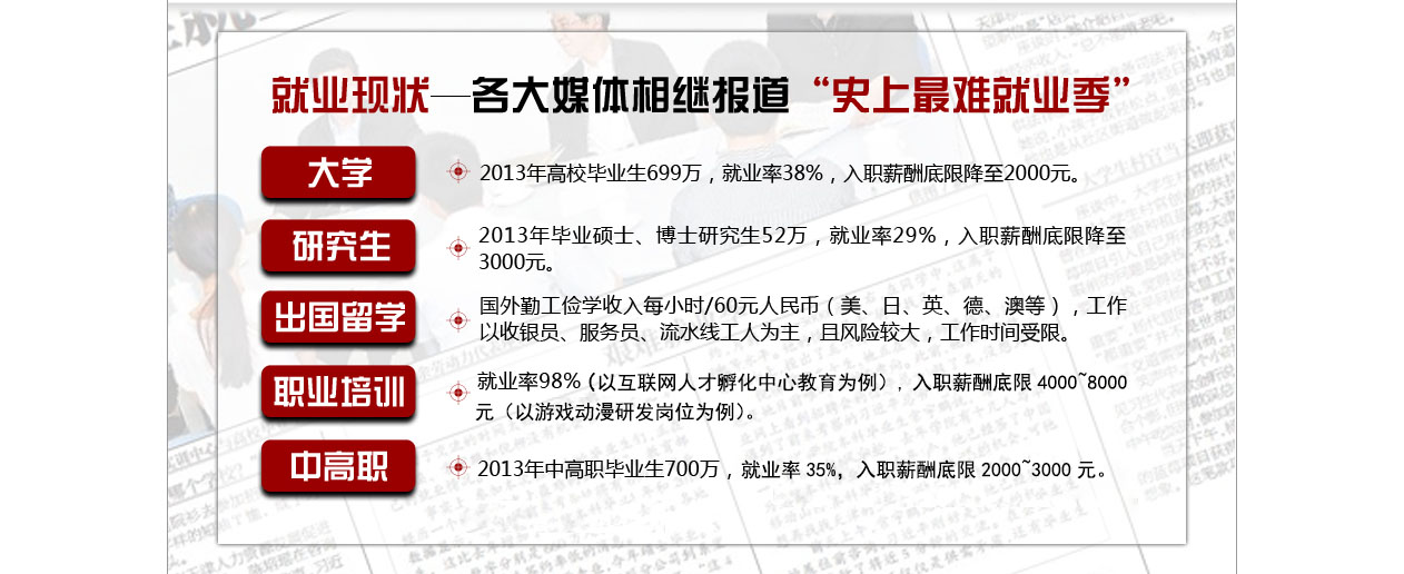 2.凡想改变目前现状的学员均可报名,所有专业均不招收色弱、色盲学员。