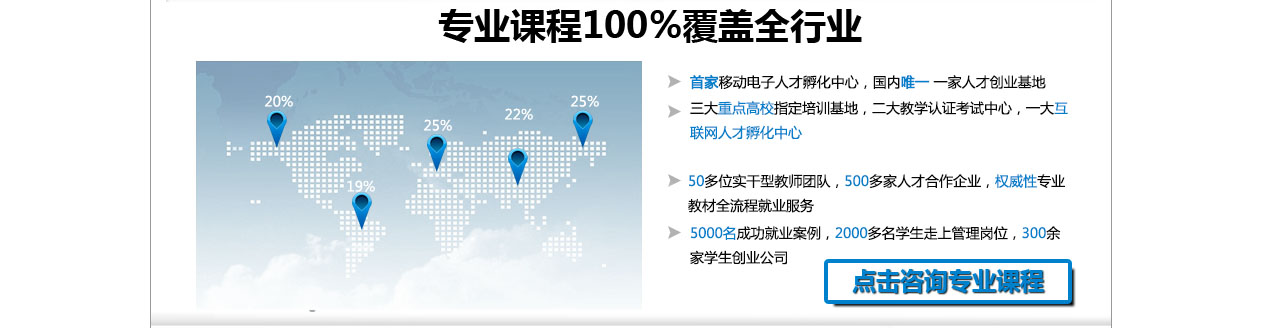 企业优势:三大生点高校、二大教学认证、一大人才中心