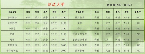 ★延边大学成人教育函授专科、专升本、高升本招生专业