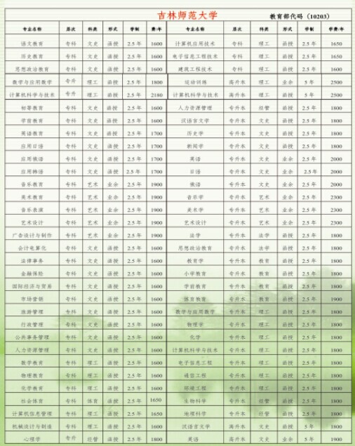 ▲吉林师范大学网教函授专科、高升本、专升本招生专业如下: