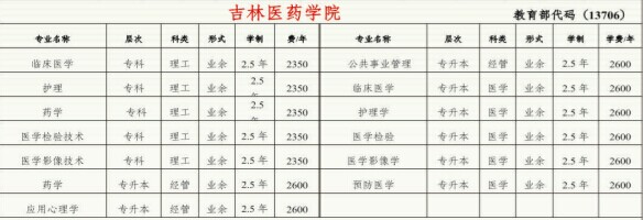 ★吉林医药学院成教业余专科、专升本开设的专业有: