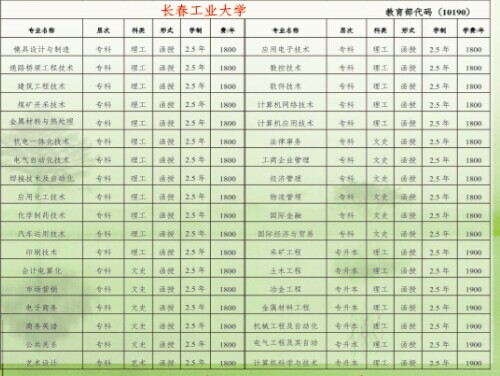 ▲长春工业大学成教专科、专升本、高升本函授招生专业: