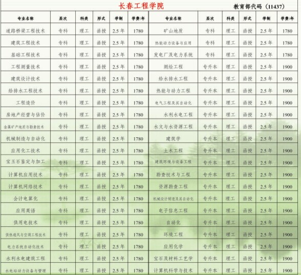 ★长春工程学院成教专科、专升本、高升本函授制招生专业如下: