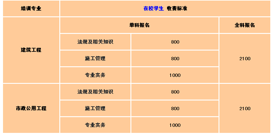 注:① 所收费用含:培训费、教材费、网上报名费(仅限在校学生);② 老学员补考培训,在校学生300元/科,社会学员500元/科