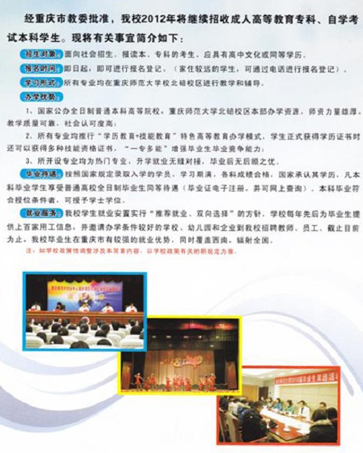 其他以重庆师范大学的名称招收学前教育专业的,均为假冒!