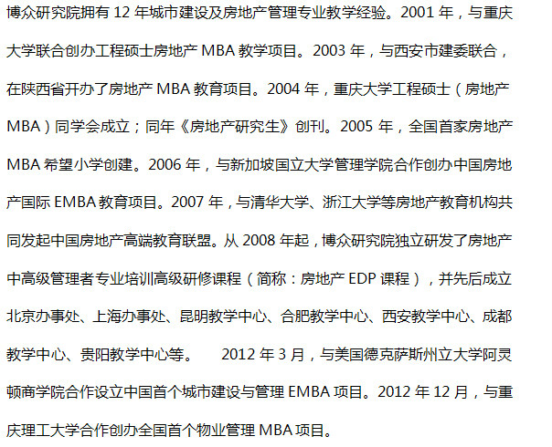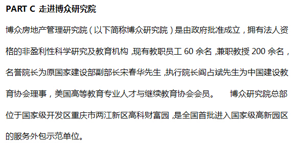 3、修完全部课程符合上述1条的学员即颁发重庆博众房地产管理研究院物业管理MBA课程结业证书。