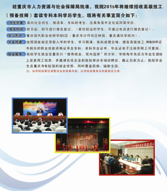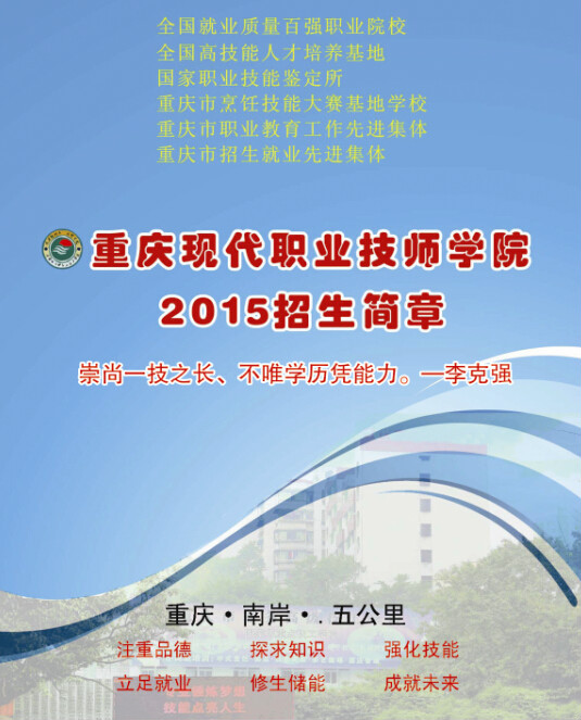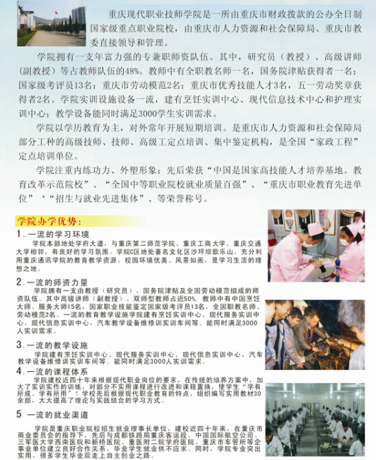 重庆现代职业技师学院是一所由重庆市财政拨款的公办全日制国家级重点职业院校,由重庆市人力资源和社会保障局、重庆市教委直接领导和管理。