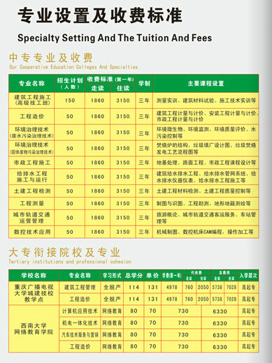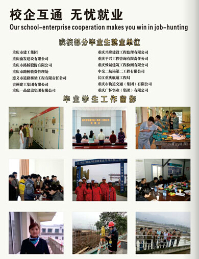 重庆市城市建设技工学校(重庆市城市建设管理学校)是集学历教育、职业培训、技能鉴定为一体的市级重点中职学校,中央财政支持的建筑专业、数控技术实训基地,国家高技能人才培训基地。我校毕业生就业率达98%以上,毕业生安置做到了高效优质。