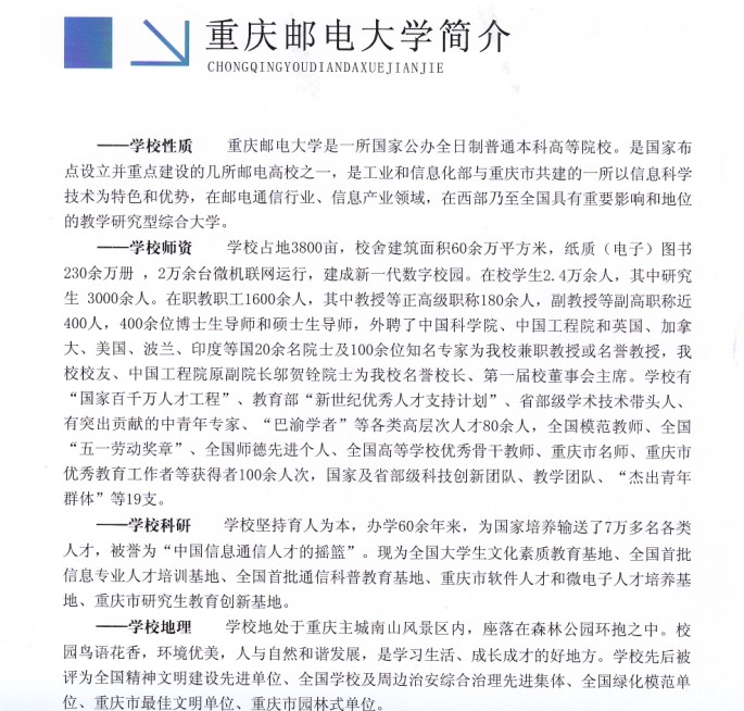 重庆邮电大学是一所国家公办全日制普通本科高等院校,位于重庆市主城南山风景区内。学校办学60余年来,为国家培养输送了7万多名各类人才,被誉为“中国信息通信人才的摇篮”。