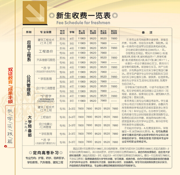 护理学、涉外护理学、临床医学、中药学、助产、药学、针灸推拿、口腔医学技术、建筑工程技术、建筑工程管理、工程造价、工程监理、会计学、工商企业管理、汽车服务与营销、园林设计