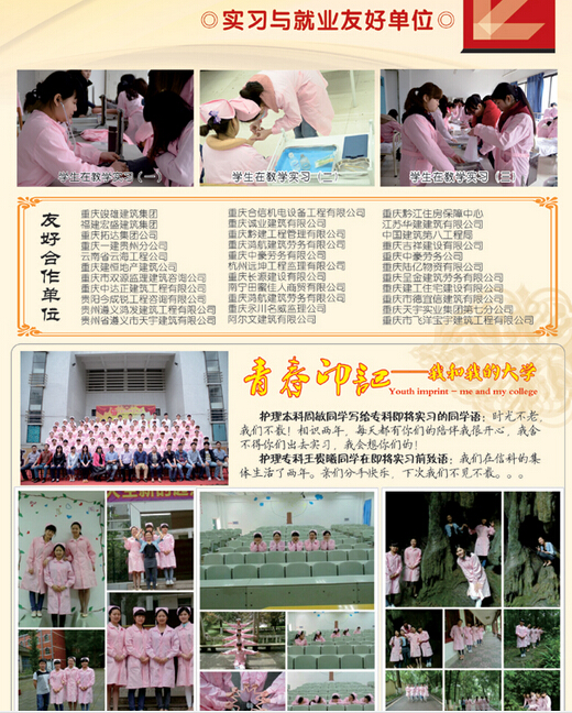 重庆三峡联合职业大学护理学专业是我校一个优秀特色专业。不仅在校内进行基础学习和操作,毕业后还可到市级医院进行实习工作。
