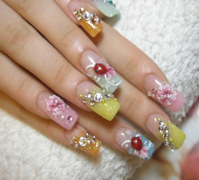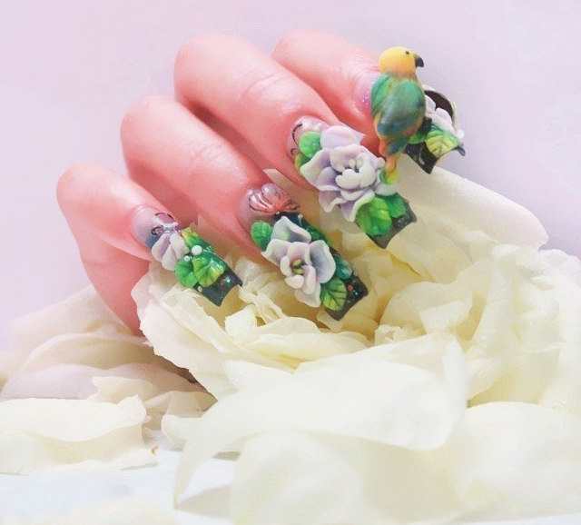 水晶甲内雕:玫瑰花、结合光疗甲和水晶甲的雕花制作技巧实例。