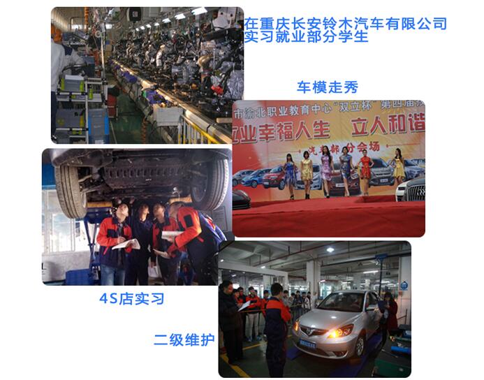 专业特色:汽车制造与检修专业立足区域经济发展需要,获重庆市政府教学成果奖1项。建有国家紧缺人才培养基地、重庆市市级实训基地,长安集团人才储备基地;近年来学生对口高考升学率97%,本科上线率50%以上,毕业生双证获取率达96.7%,就业率达100%,用人单位满意度98%。