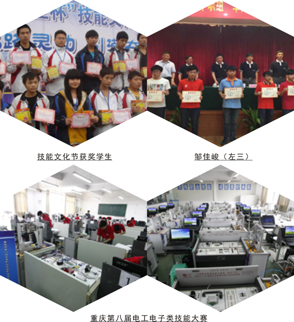 参加全国职业院校技能大赛,师生获全国技能大赛一等奖2项,二等奖6项,三等奖3项;获市级技能大赛一等奖9项,二等奖6项。承办“电子设备组装与调试项目”国家职业技能大赛1次,承办中国西部“电子设备组装与调试项目”职业技能大赛2次,并连续9年承办“电子设备组装与调试项目”重庆市技能大赛。
