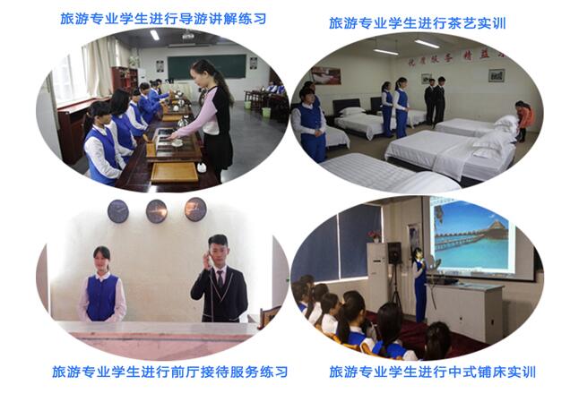 专业技能课程:旅游心理学、旅游概论、形体训练、旅游与酒店服务情景英语、餐饮服务与管理、前厅服务与管理、地陪导游操作实务、导游基础、中国旅游地理、客房服务与管理、茶艺服务、咖啡服务。