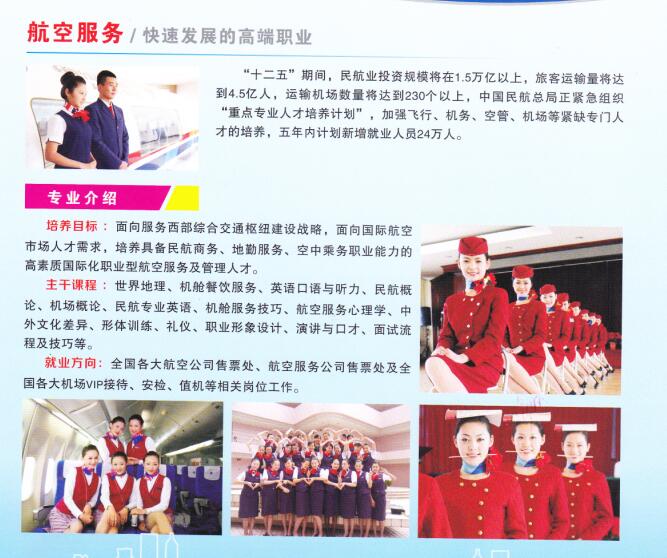 世界地理、机舱餐饮管理、英语口语与听力、民航概论、机场概论、民航专业英语、机舱服务技巧、航空服务心理学、中外文化差异、形体训练、礼仪、职业形象设计、演讲与口才、面试流程及技巧等。