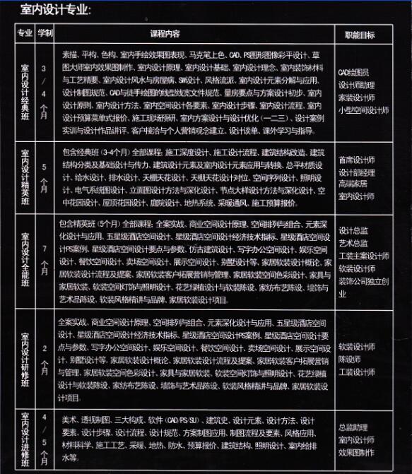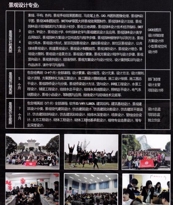 开始班次:室内设计、景观设计学历班、精英设计师班、就业保证班、手绘美术班、绘图软件班、国家行业资格证书考试。