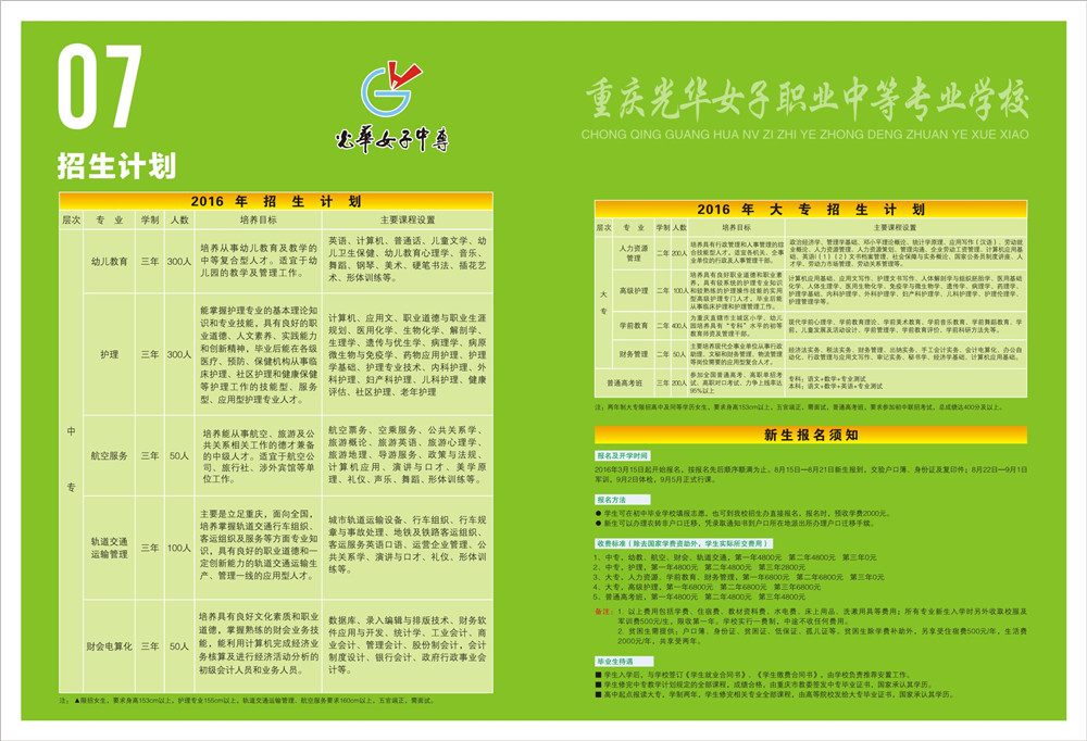 重庆光华女子职业中等专业学校于1996年4月经重庆市教委《重教职〔1996〕29号文》批准成立,是一所市(省)级重点职业学校。