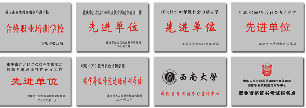 2010年,获重庆市人力资源和社会保障局颁发的“诚信等级评定达标培训学校”;