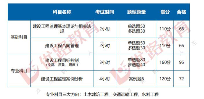 监理工程师专业类别:土木建筑工程、交通运输工程、水利工程