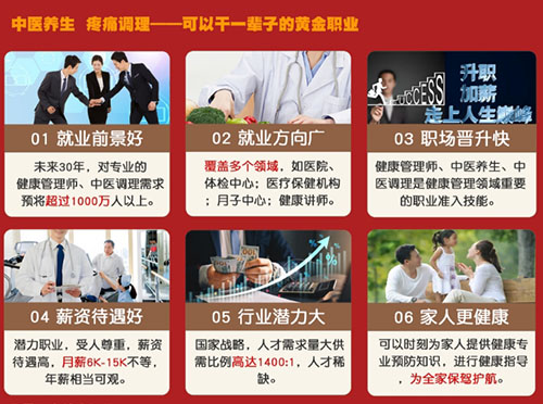 你是否为健康担忧?是否对中医健康产业感兴趣但不知从哪儿开始?或是想要从事蒋康行业相关工作,希望拓展业务领域的人士,想要考取中医健康类职业资格证书的相关人士,那么这趟健康养生的培训列车将会给带来更全面系统的中医专业知识学习,提升专业技能。